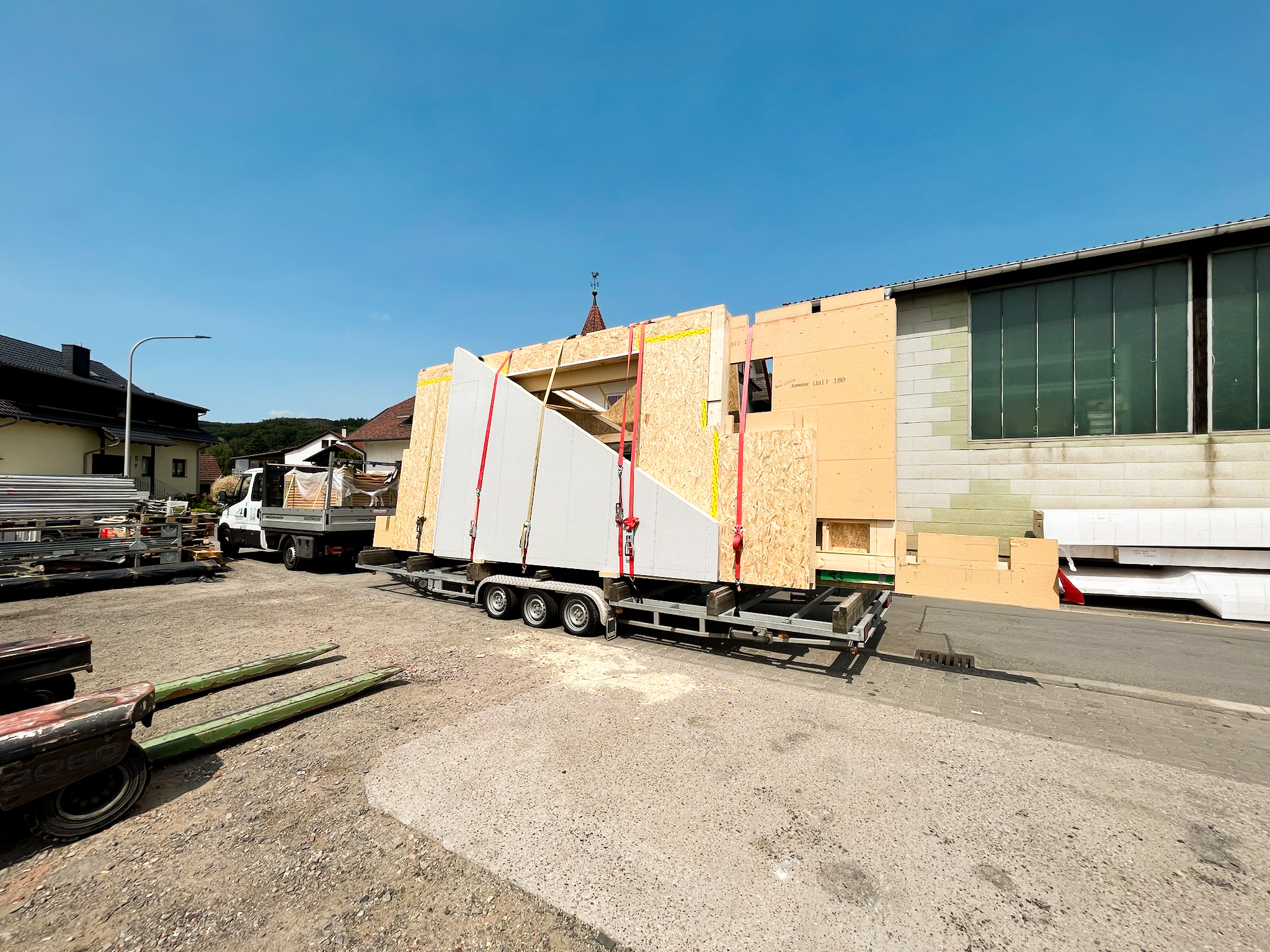 Ein entscheidender Vorteil der Elementierung ist zudem die Wetterunabhängigkeit. Bei Regen oder ungünstigen Bedingungen sinkt die Produktivität auf Baustellen drastisch. In unserer Halle können wir wettergeschützt kontinuierlich arbeiten und bei Bedarf sogar Schichtbetrieb fahren – so bleibt der Baufortschritt planbar und Jahresspitzen lassen sich souverän bewältigen.